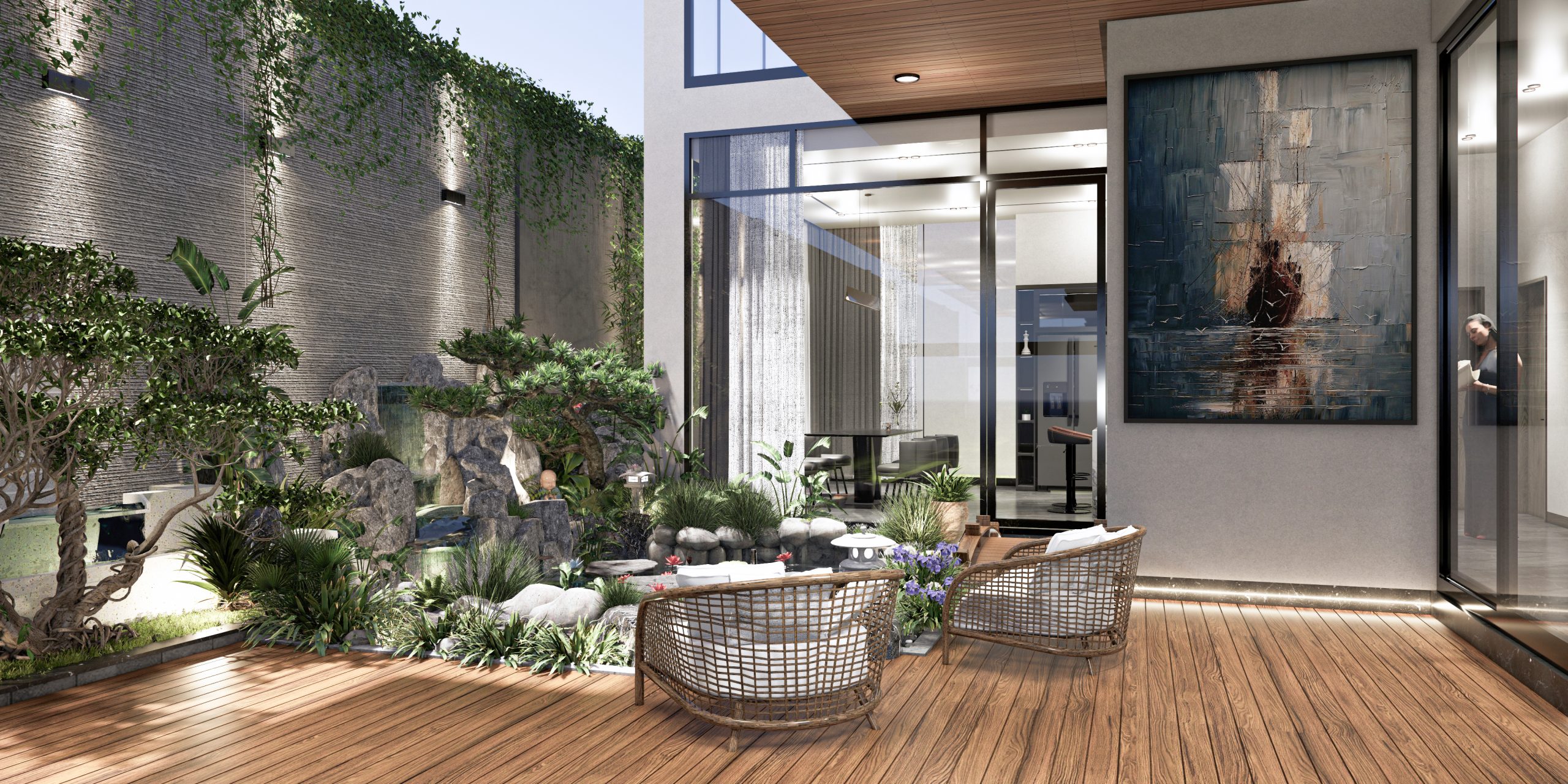 Đặc trưng chính là sự cân bằng tuyệt đối, đường nét tinh xảo, hoa văn chạm khắc sâu, và bố cục hài hòa giữa các chi tiết kiến trúc.